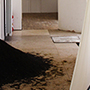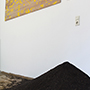 Cloth soaked in rapeseed oil reaching from the ceiling to the floor narrows the space to a slender passage and creates the feeling of trepidation. The observer intuitively steps back from the oily and sticky surface. Due to the situation of the narrow transit and the carelessness of the visitor, the pile of rapeseeds was scattered over the floor in the course of the exhibition.Thus its surface became more and more insecure.